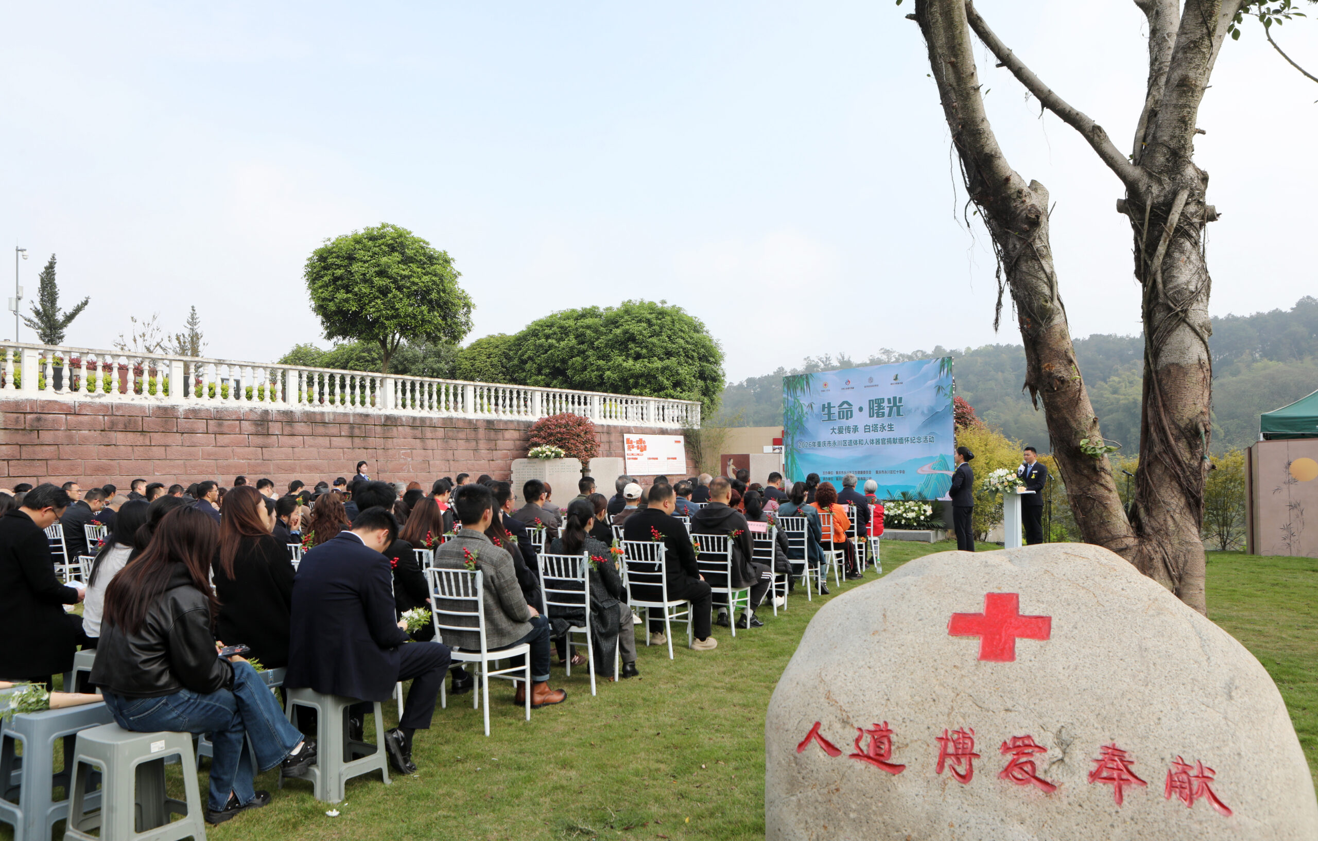 3月26日,由重庆市永川区卫生健康委员会、永川区红十字会联合主办,重庆白塔园承办的第三届永川区人体器官、遗体及角膜捐献纪念活动,在重庆白塔园园区内红十字会人体捐献纪念广场温情举行。市、区相关部门领导、医疗机构代表、捐献者家属、登记志愿者、医科院校师生及各镇街红十字会负责人等120余人齐聚现场,共同缅怀捐献者,传递生命希望。